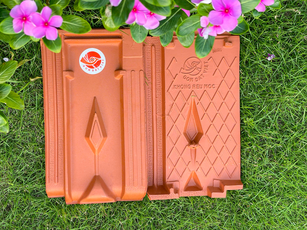 Với lòng thành kính và tinh thần phụng sự, Tổ hợp Công ty Cổ phần Gốm Đất Việt đã cung cấp sản phẩm ngói đỏ đất sét nung cao cấp (22 viên/m²) để lợp mái cho công trình. Dòng sản phẩm này được sản xuất theo công nghệ nghiền khô siêu mịn và nung một lần ở nhiệt độ trên 1200°C, cho ra những viên ngói có màu đỏ tự nhiên, bền đẹp, chống rêu mốc và thích ứng với mọi điều kiện thời tiết. Đây cũng chính là loại ngói đang được tin dùng tại nhiều di tích, đình chùa và công trình kiến trúc mang đậm bản sắc Việt trên khắp cả nước