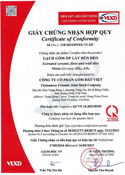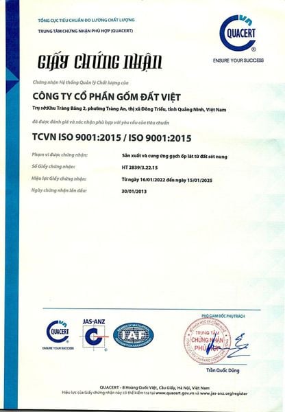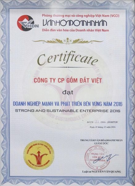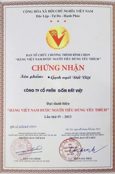 | 5 | Chứng nhận Doanh nghiệp Khoa học và Công nghệ Công ty CP Gạch Ngói Đất Việt | ![]() | Xem chi tiết | |