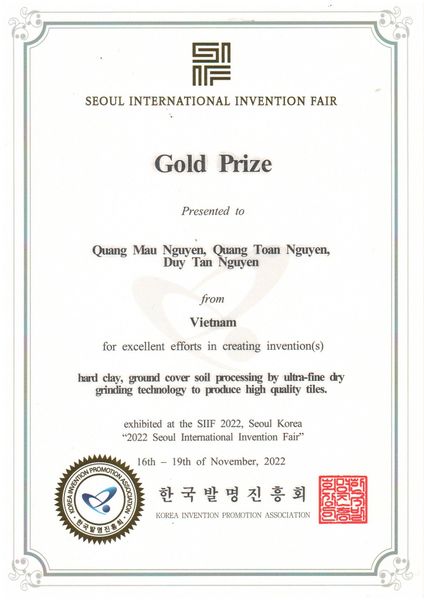 | 10 | Giải Vàng do Hiệp hội Xúc tiến Sáng chế Hàn Quốc (KIPA) trao tặng |