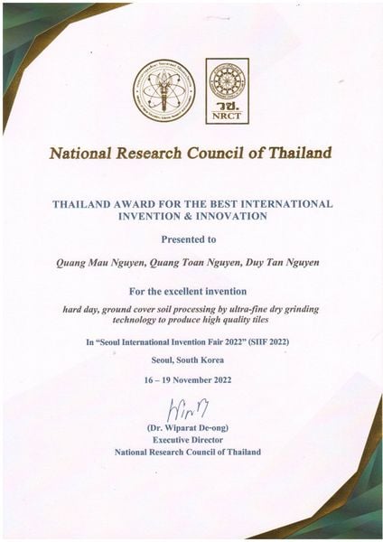 | 31 | Giải thưởng Thái Lan dành cho Sáng chế và Đổi mới Quốc tế Xuất sắc nhất năm 2022 |