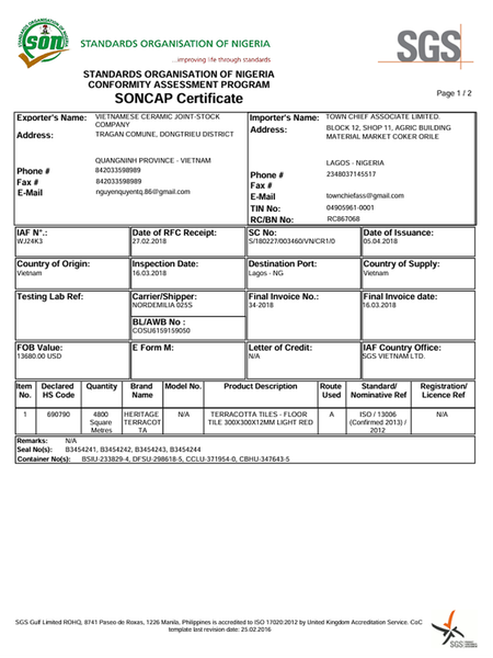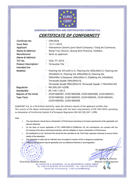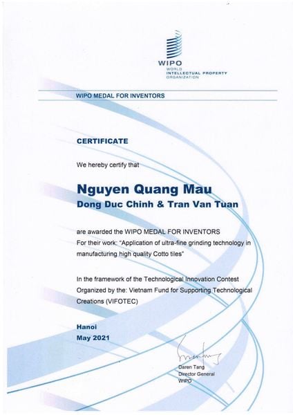 | 43 | Chứng nhận của Ban tổ chức Triển lãm Quốc tế VietBuild |