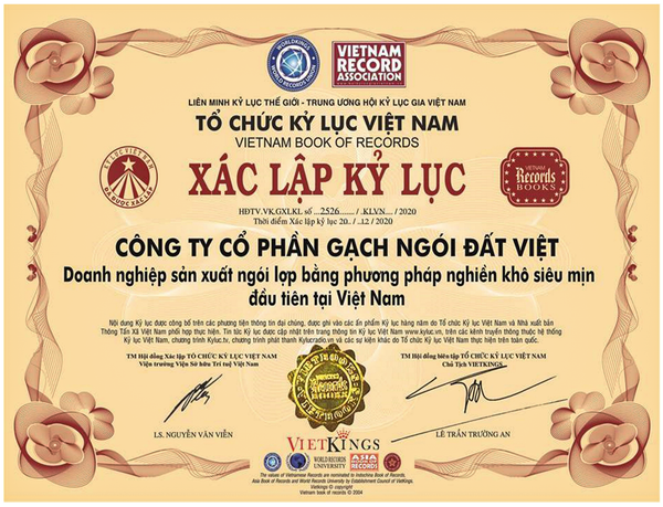 | 8 | Các Kỷ lục Việt Nam của Công ty CP Gạch Ngói Đất Việt |