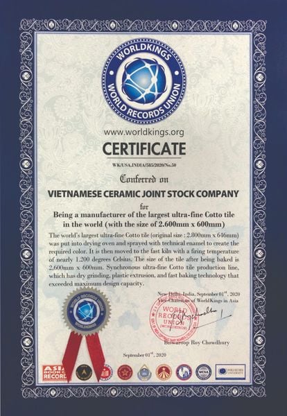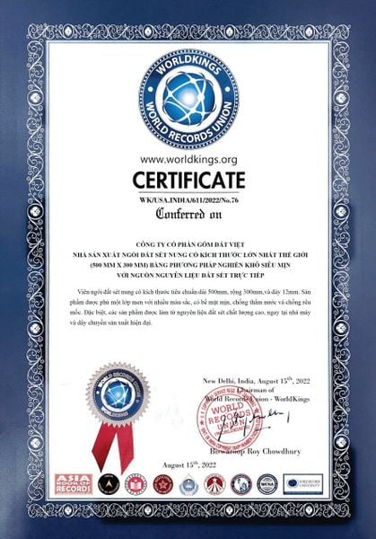 | 9 | Các Kỷ lục Việt Nam của Công ty CP Gốm Đất Việt |