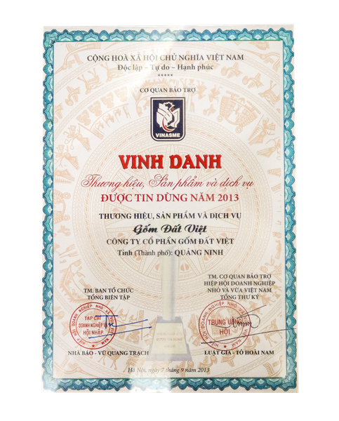 | 6 | Chứng nhận Doanh nghiệp Khoa học và Công nghệ Công ty CP KD – XNK Gốm Đất Việt | ![]() | Xem chi tiết | |