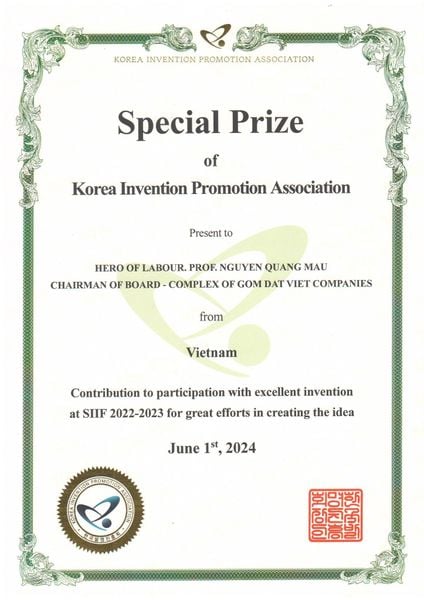 | 9 | Giải Đặc biệt do Hiệp hội Xúc tiến Sáng chế Hàn Quốc (KIPA) trao tặng |